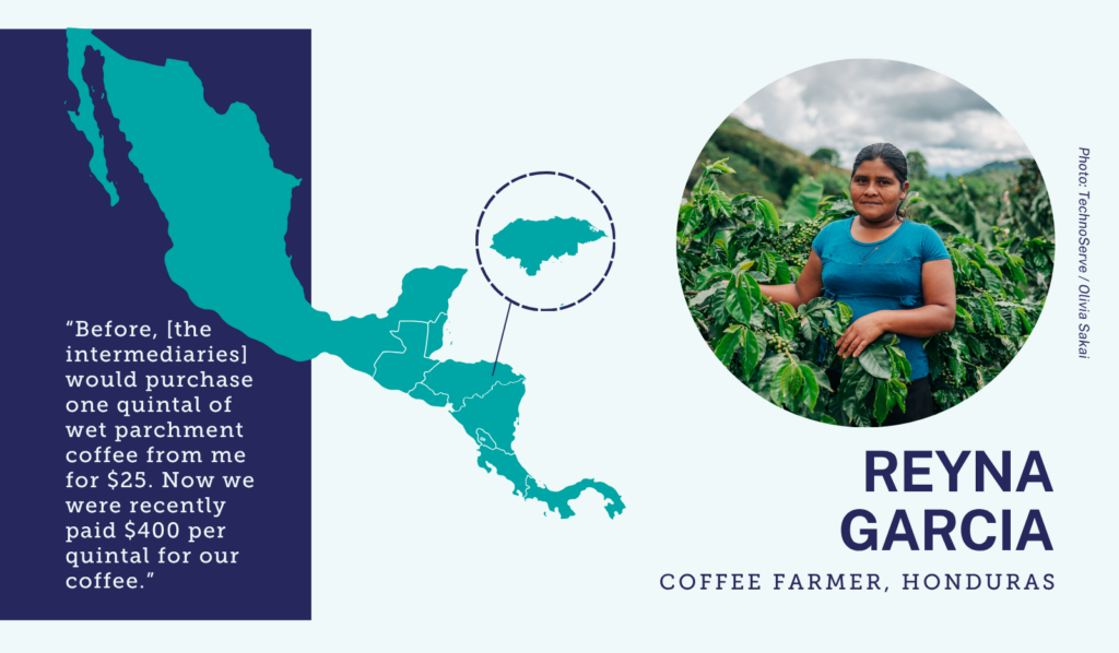 Today, with TechnoServe’s support, Reyna’s coffee farm is thriving and she has been able to maintain the consistency of her great cup profiles. She is glad that the project has helped her earn enough money to support her family. On the business side, she plans to continue participating in coffee competitions in order to promote her coffee and establish new commercial relationships.