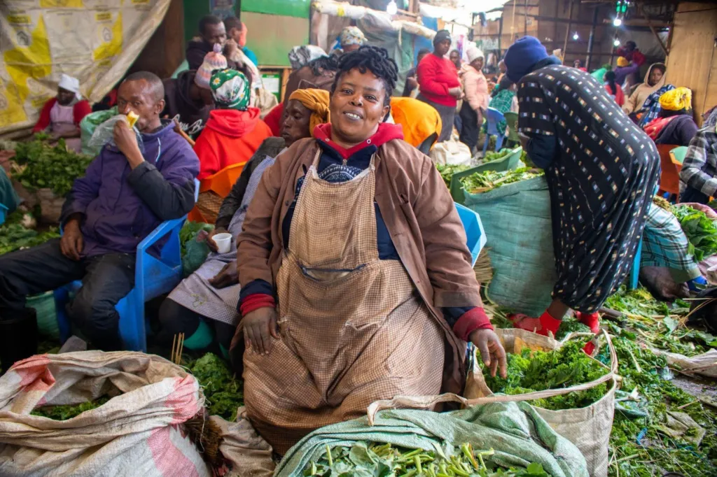 A vegetable trader at Muthurwa wet market in Nairobi, Kenya. (TechnoServe / Oliver Stephen)