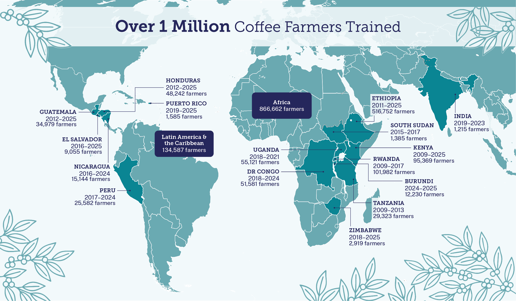 Concrete results from our global coffee work, backed by rigorous measurement.