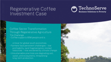 Coffee production is under pressure from long-standing challenges and emerging threats like climate shocks and the depletion of natural resources. A new approach is needed. The Regenerative Coffee Investment Case finds that helping farmers adopt proven regenerative practices can boost the incomes of more than 3 million smallholders, increase coffee exports by 30%, and cut greenhouse gas emissions by 3.5 million tons of CO₂e per year—all while enhancing biodiversity and restoring nature.